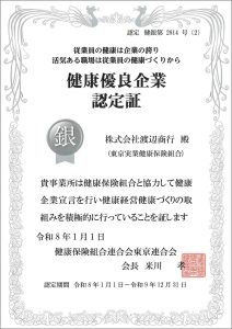 渡辺商行は健康経営優良法人認定維持を目指し「銀の認定」を更新しました